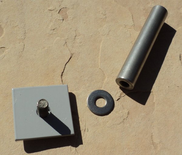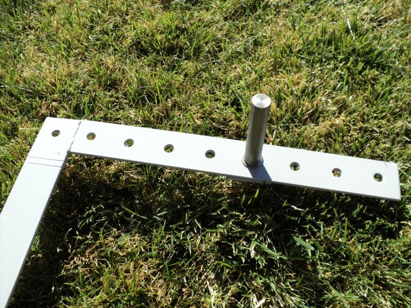 The four sections join together at each end by a stainless-steel post that screws onto a stainless-steel bolt which is welded to the metal. This provided a minumim of hardware for a set of regulation competition weaves.